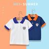 Camiseta Infantil Manga Curta Bordada Gola Polo Azul Atacado Dropshipping Estilo Japonês 26 Verão Novo Meninos Cor Blocada Polo 071