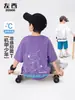 Roupa de Verão para Meninos Solona Camiseta de Manga Curta com Toque de Gelo 2025 Nova Roupa Infantil Verão Dopamina Top Solto