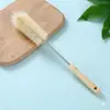 Escova de Cotovelo com Cabo de Madeira, Copo Térmico para Mamadeira, Escova para Limpeza de Chaleira e Copo, Escova de Cabo Longo Estendida para Pendurar