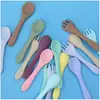 Pasta de arroz de grau alimentício transfronteiriço Alimentação complementar Louça de treino cabeça macia Bebé comer à prova de gotas Colher de silicone completa Conjunto de garfos