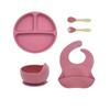 Conjunto de cinco peças de louças infantis, prato para bebês, tigela de silicone para bebês, babador, garfo e colher, conjunto de alimentos suplementares, suprimentos para mães e bebês