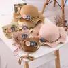 Chapéu de Sol Infantil Conjunto de Chapéu de Palha de Verão Novo para Menina Bolsa Proteção Solar para Viagem Chapéu de Sol de Aba Larga Chapéu de Bebê Princesa
