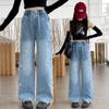 Calça Jeans Wide Leg Feminina 2026 Primavera/Outono Nova Calça Solta Comprida para Crianças de Média e Mais Velhas Estilo Coreano Tendência Cool Calça Longa Reta