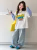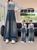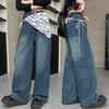 Top Versátil Falso Duas Peças para Meninas 2026 Primavera/Outono Novo Conjunto de Duas Peças Jeans Wide-Leg Camiseta Estilo Coreano Infantil