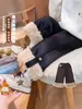Pudding Haru Winter Wear Novas Calças para Meninas 2024 Inverno Novas Calças de Malha Forradas com Lã para Crianças