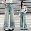 Calça Jeans Infantil Primavera e Outono 2026 Novo Estilo Coreano Moda Calça Wide Leg Meninas 6-15 Anos Calça Longa Reta