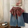 Roupas Infantis Primavera e Outono Jeans de Bebê Personalidade Infantil Estilosa Marca da Moda Estilo Coreano Xadrez Babado Calça Saia Reta