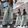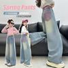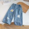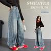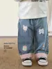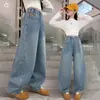 Calça jeans larga super fofa para meninas 2026 nova roupa infantil primavera calça larga de celebridade da internet calça para meninas maiores