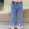 Roupa Infantil Calças Retas com Fenda para Meninas 2025 Primavera e Verão Novo Estilo Coreano Calças Jeans Desgastadas para Crianças Camadas