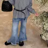 Calças Jeans para Meninas Primavera e Outono 2025 Novas Calças Elásticas Flared Infantis Calças Compridas Slim-fit para Meninas Primavera