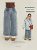 Calças de Primavera e Outono para Meninas 2025 Novas Calças Jeans de Inverno Forradas com Lã Infantil Retas Combinam com Tudo de Perna Larga