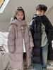 Jaqueta de Penas Nova de Comprimento Médio de Inverno para Meninos e Meninas, Estilo Coreano, Acolchoada, Quente, Casual, Estilosa, Casaco Longo
