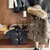 Jaqueta de Penas Infantil 2023 Olhos Apertados Produto Novo de Inverno para Meninos e Meninas Jaqueta de Penas de Comprimento Médio com Capuz e Gola de Pelo