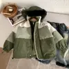 Jaqueta de Inverno Grossa e Quente Infantil 2025 com Zíper de Cor Contrastante, Forro e Capuz de Veludo para Meninas - Moda