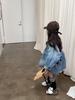 2025 Novo Outono Roupas Infantis Roupas Infantis Estilo Coreano Roupas Infantis Moda para Meninas Camisa Jeans Trendy de Comprimento Médio Jaqueta Jeans