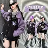 Jaqueta Casual Feminina 2026 Chegada Nova da Primavera Patchwork Bordado Preto Roxo Bloco de Cores Estampa de Coração Jaqueta para Crianças Grandes Jaqueta Baseball