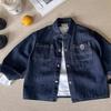 Camisa jeans 2025 primavera e outono, novo estilo de roupa para meninos e meninas, jaqueta de marca da moda, camisa de cor pura para bebês, estilo feminino