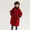 Casaco Longo de Lã para Meninas Outwear 26 Outono e Inverno Novo Estilo Comércio Exterior Roupas Infantis Atacado para Idades 3-9 com Cachecol Grátis