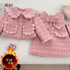 Conjunto Vestido de Lã Estilo Pequeno Chanel para Meninas Inverno 2025 Nova Moda Jaqueta Engrossada com Vestido de Algodão Conjunto de Duas Peças