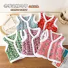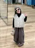 2024 Nova Moda Outono e Inverno Estilo Coreano Roupas Infantis Meninas Colete Acolchoado Floral Jaqueta Reversível Calça Cenoura