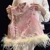Colete de Panda Novo Estilo Chinês para Meninas Transfronteiriço Outono e Inverno Infantil Rayon Penas de Avestruz Acolchoado Estilo Tendência