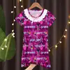 Camisola de Noite de Verão Estampada Fina Manga Curta Estilo Princesa Fofa Pijama Infantil Roupa de Casa Infantil de Desenho Animado para Menina