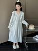Vestido de Dormir Infantil de Celebridade da Internet Primavera e Outono Verão Manga Comprida Algodão Penteado Gola Princesa de Desenho Animado para Menina Camisola Infantil Média e Grande para Pais e Filhos
