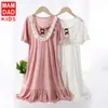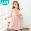 Vestido de Noite de Verão para Meninas Shangbaomai Pijama Infantil de Manga Curta Roupa de Casa Algodão Vestido de Noite para Meninas de Manga Curta Fofo Princesa