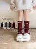 Meias de malha para meninas Primavera e outono Meias empilhadas Cor sólida Lolita Outono e inverno Protetores de perna de bebê Capa de perna de lã acima do joelho