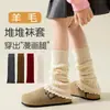 Mangas de Meia Infantil Lã Australiana Quente Almofadas de Joelho para Panturrilha Aquecedores de Perna 2025 Outono/Inverno Novo Estilo Meias Enrugadas de Cor Sólida para Meninas Coberturas Longas para os Pés
