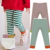 Leggings para meninas forradas de lã espessadas outono e inverno calças quentes de uma peça algodão listras verticais meia-calça infantil comprimento tornozelo
