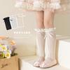 Meias femininas outono e inverno confortáveis quentes meias de panturrilha cano longo estilo princesa laço fofo meias de algodão infantis estudantis