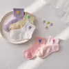 Meias Infantis Algodão Q Fofo Animal Pequeno Meias Primavera Verão Meninas Médias Malha Respirável Estudante Branco Carto Meias