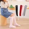 Meias de pelo para meninas primavera e outono, meias de cor sólida com agulha dupla, meias de bebê para outono e inverno com laço vertical, atacado