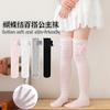 Meias Femininas Primavera e Outono Meias Acima do Joelho de Comprimento Médio Meias de Bezerro de Renda Cor Pura Princesa Laço Infantil