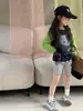Shorts Jeans Femininos Verão Roupa Exterior 2025 Novo Infantil Preto Cyber Popular Roupa de Verão Calças Finas Infantis Calças