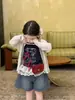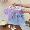 Conjunto de Verão para Meninas Estilo Coreano Roupas Infantis Jeans com Listras Manga Curta Roupas de Verão para Meninas Casual Versátil Tendência