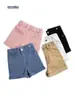 Shorts Jeans Infantil de Verão com Franjas Rasgados para Meninas Etiqueta de Teclado Jeans da Moda Hot Pants Dropshipping