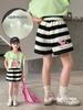 Emo Beibei 2025 Verão Meninas Grandes Estilo Coreano Doce Botão de Flor Shorts Infantil Contraste de Cor Listrado Calças Casuais