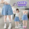 Shorts Jeans Feminino Verão Roupa Externa Infantil Estilo Coreano Estilo Princesa Soltos Hot Pants Shorts Finos para Crianças Maiores