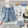 Shorts Jeans de Verão para Meninas 2026 Nova Moda Estilo Coreano para Crianças Pequenas, Médias e Grandes Bolsos Traseiros Estilosos com Letras Hot Pants Tendência