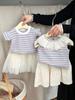 Regata Fina de Verão para Meninas Estilo Coreano Top Listrado de Manga Voadora Estilo Ocidental para Menina Camiseta Doce Combina com Tudo para Bebê