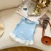 Colete Versátil Novo de Verão para Meninas Moda Bebê 2025 Tendência Estilo Coreano Doce Renda Laço Sem Manga