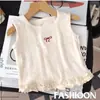 Novo Colete Feminino Verão Estilo Fino Infantil Menina Bebê Criança Solto Bordado de Laço Blusa Regata Top