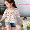 Roupa Infantil Estilo Coreano Verão Bebê Manga Curta Camiseta Infantil Novo Estilo Meninas Manga Curta Estampada com Frutas Tops Fornecimento Transfronteiriço