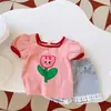 Verão Infantil Novo Estilo Coreano Camiseta Fofa de Manga Curta Estampada com Flores para Bebê Menina Top Doce Tendência
