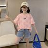 27home versão coreana da geração de camiseta de manga curta infantil 2024 verão novas roupas infantis meninas jaqueta de meia manga maré atacado