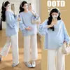 Moda Gestante 2026 Primavera Conjunto de Duas Peças Blusa Top de Maternidade Casual Solto Plus Size Manga Longa