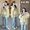 Pijama feminino com protetor de peito, algodão puro para amamentação, maternidade, serviço domiciliar, centro Yuezi