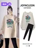 Blusão de Moletom Jingqi para Gestantes Temporada de Primavera 2025 Novas Roupas Tamanho Grande Camiseta Solta de Manga Longa de Comprimento Médio para Mulheres